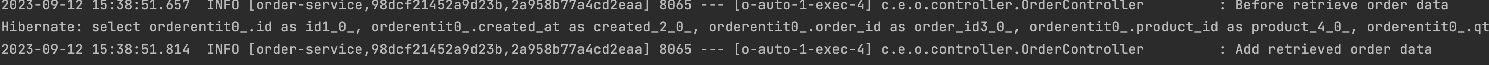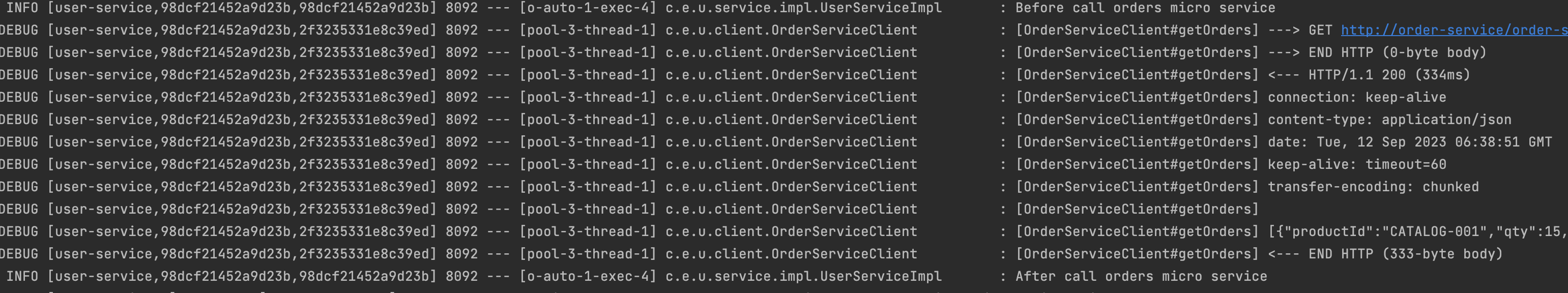user-service에서 order-service를 호출하는 부분에 로그를 명시하였다.
