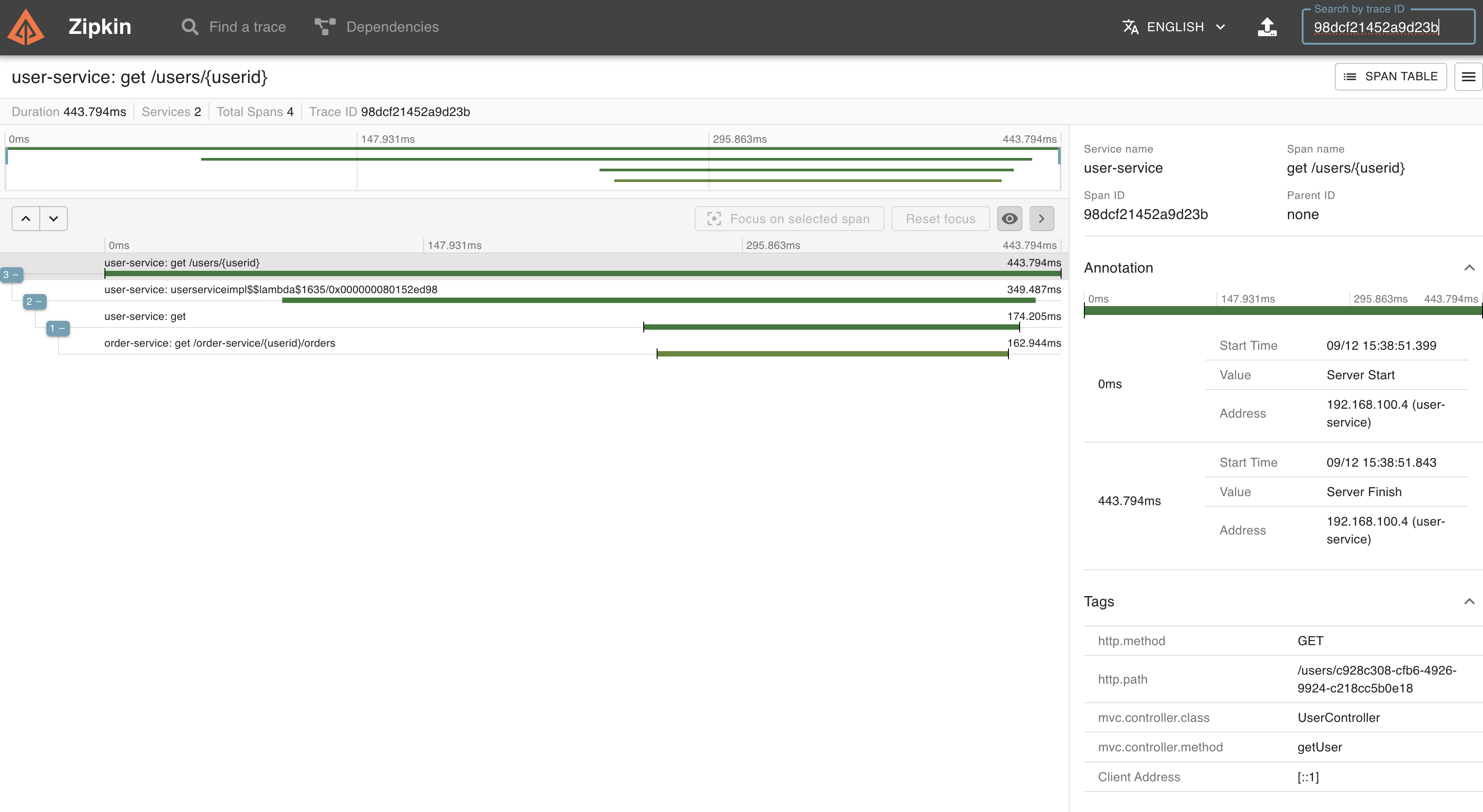 이러한 Trace정보를 Zipkin과 같은 분산 트랜잭션 추적 시스템으로 발신하게되면 비쥬얼하게 추적과 분석이 가능해진다.