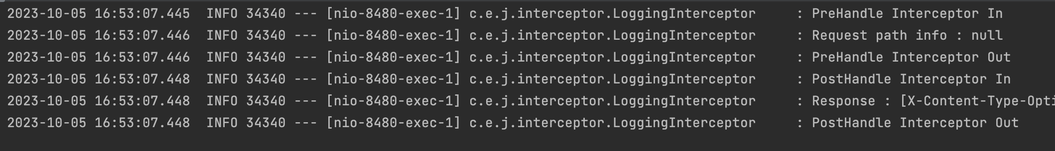 해당 인터셉터가 정상적으로 패턴에 맞게 동작했다.